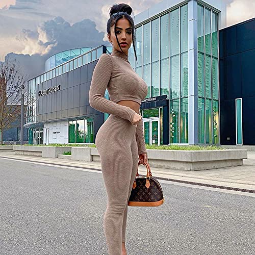 Siyova Tuta da Donna Elegante Casual Basic Camicia a Maniche Lunghe+ Leggings Tuta Set Completo Sportivo Donna Maglia a Nove Punti Collant Fitness Jogging Yoga (Cachi, M)