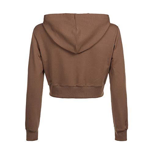 Siyova Felpa con Cappuccio da Donna con Cerniera Casual Felpa Donna Corta Maniche Lunghe Giacca Tinta Unita con Tasche Cappotto Stile Ampio Autunnale per Ragazza (Marrone, M)