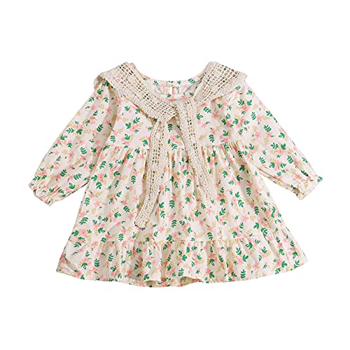 Siyova Vestito Neonata a Maniche Lunghe con Stampa Floreale Completo Bambina 2 Pezzi Abito Ampio+Scialle in Pizzo Abito da Principessa Autunnale Primaverile (Rosa, 6-12 Mesi)