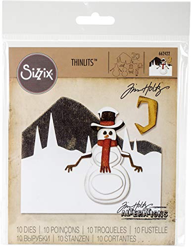 Sizzix 662422 Fustelle Thinlits Set 10 Pezzi-Scena con Pupazzo di Neve di Tim Holtz, Acciaio, Multicolore, 19.1x14.4x0.4 cm