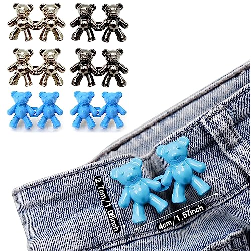 SJBAUTYO 6 Paia di Orso Estensori Vita Pantaloni,Bottoni per Stringere Jeans Staccabili Regolabili Perni Fibbia Clip per Gonna Jeans Regolazione Vita