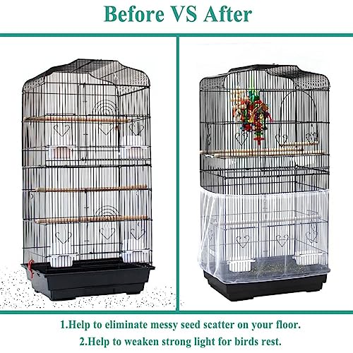 SJBAUTYO Gabbia per Uccelli Rete in Nylon Copertura, Extra Large Bird Cage Seed Catcher, Copertura Universale per Guardia Voliera per Uccelli Pappagalli, Ventilata e Antipolvere Taglia L (Bianco)