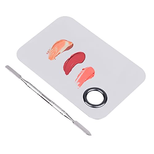 SJBAUTYO 2 set Tavolozza per il trucco da con fori,Tavolozza professionale,Palette per Miscelazione Trucco Palette Spatola in Acciaio Inossidabile, con Spatola per Mescolare Fondotinta, Argento