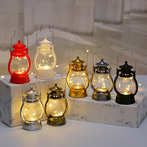 SJDWDX Lanterna a LED vintage a batteria, in plastica bianca calda, lampada decorativa da appendere, design retrò, con 3 batterie piccole, per decorazione domestica, feste, 6 x 13 cm
