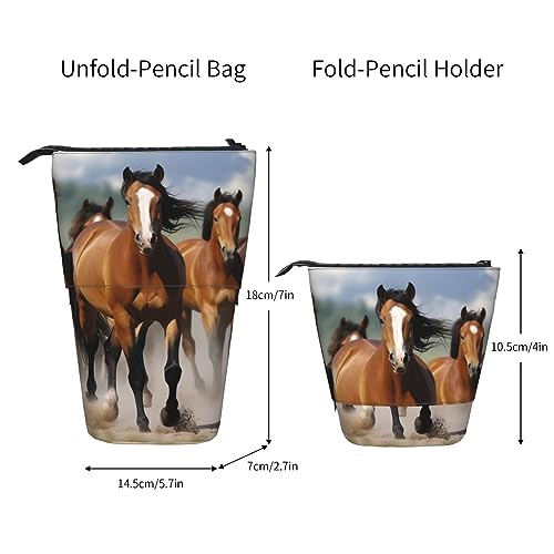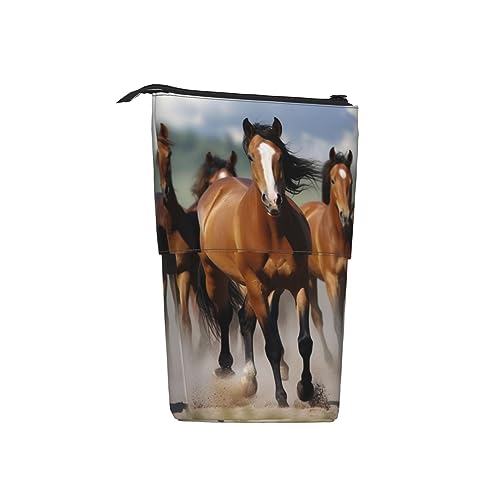 SJOAOAA Astuccio telescopico con stampa di cavalli, astuccio portapenne con cerniera, per uomini e donne, Nero, Taglia unica, Astuccio portamatite in piedi