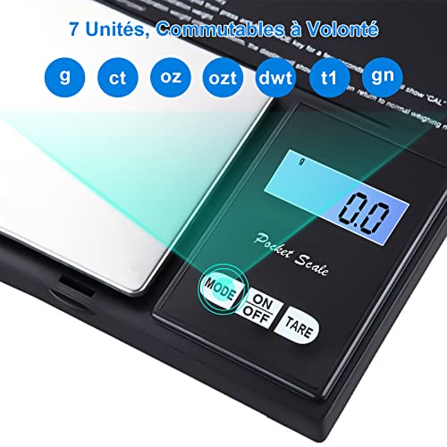 ✅【7 unità diverse】La bilancia di precisione include 7 unità di misura necessarie G, CT, OZ, OZT, DWT, TL, basta premere il pulsante "MODE" per convertire l'unità appropriata in modo facile e veloce.