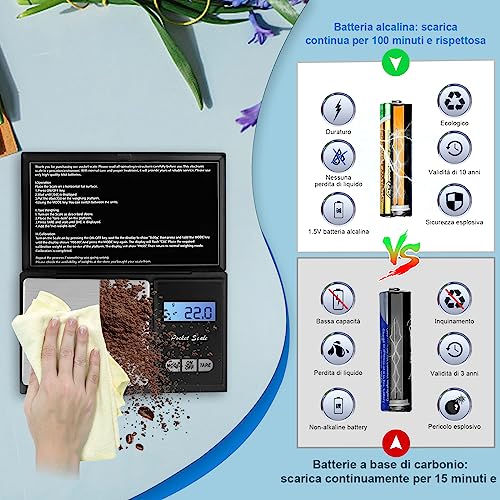 ✅【Bilancino di precisione 0,1g】Bilancino precisione dotato di sistemi di misurazione a sensore ad alta precisione per una pesatura accurata da 0,1 grammi a 1000 grammi e la loro stabilità garantisce letture accurate del peso.Molto adatto per piccoli oggetti