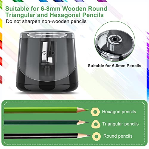 ✅ EFFICIENTE E SENZA SFORZO: Questo lame temperamatite elettrico con 2 a batteria è adatto per matite di legno rotonde, triangolari ed esagonali da 6-8 mm e consente di ottenere una bella punta in 5 secondi, senza dover acquistare diversi temperamatite per matite di diverse dimensioni. (Si prega di non temperare le matite senza legno).
