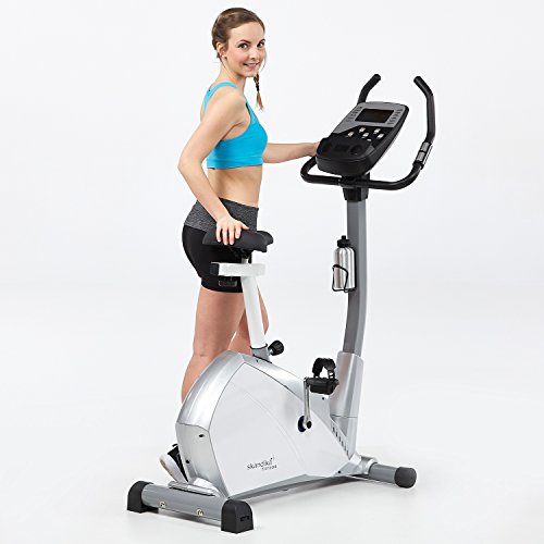 ATTREZZO SPORTIVO: L'ergometro Helios ha una resistenza magnetica, sensori frequenzimetri al manubrio, un computer d'allenamento, volano di 13 Kg con un grado di movimento extra grande e pesante. Inoltre la cyclette ha dei piedi d'appoggio stabili e facilmente regolabili per equilibrare gli eventuali dislivelli del pavimento. Carico massimo 120 Kg. Ben 19 programmi differenti inclusi: grasso corporeo, frequenza cardiaca e programma Watt.