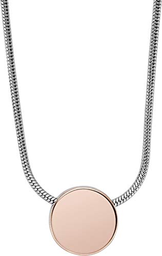 Collana in acciaio inossidabile con finitura lucida, con un pendente a disco color oro rosa - Chiusura a moschettone