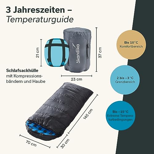 ✔ COMODO: la morbida e calda fodera interna in cotone, la spessa imbottitura in fibra cava e la coulisse nella zona della testa rendono le notti accoglienti e rilassanti. Inoltre, il materiale esterno idrorepellente tiene lontana l'umidità.