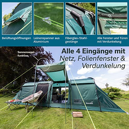 Skandika Montana 8/10/14 Sleeper/Sleeper Protect - tende a tunnel da campeggio familiare - Cabine letto scure - colonna d'acqua da 5000 mm (Protect Sleeper 10 pers. verde)