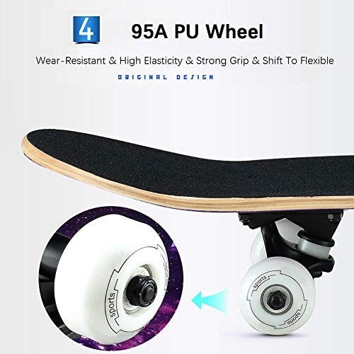 STREET SKATE - Il design concavo della doppia coda di calcio offre un maggiore controllo, consente un'ampia gamma di acrobazie e una facile frenata. Puoi scivolare sulla strada sempre e ovunque. Inoltre è ideale per pattinatori di qualsiasi livello