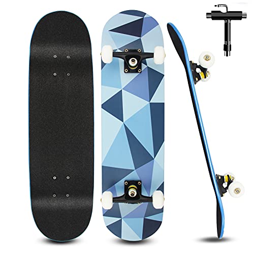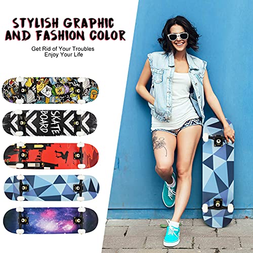 Skateboard per Principiante, 80x20 cm Skateboard Completo in Legno (Modello 9)