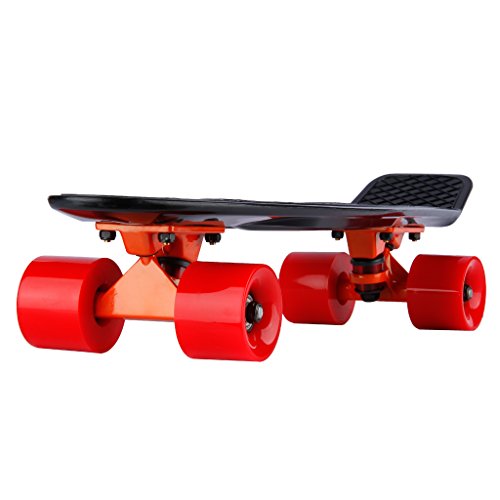 Skateboard 4 Ruote Fish-Style Cruiser ABEC-7 Cuscinetti + Camion Ruote in Alluminio, Ruote Red + Deck Nero