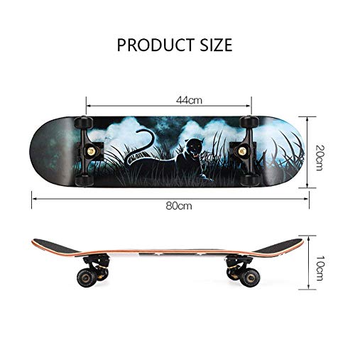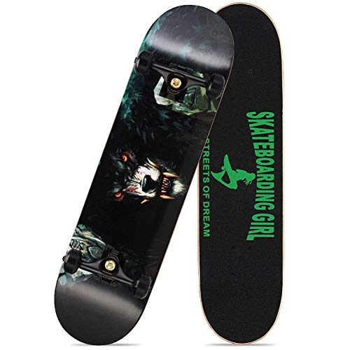 BD.Y Skateboard 31 'con 7 Strati di Acero Ruota Alta Elastica in PU Double Warp Molti Modelli Skateboard per Boy Girl Bambini Principianti Skateboard Pop, Lupo Scuro