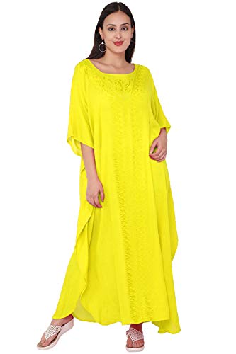 SKAVIJ Da Donna Tunica Rayon Ricamato Maxi Caftano (Formato Libera, Giallo)