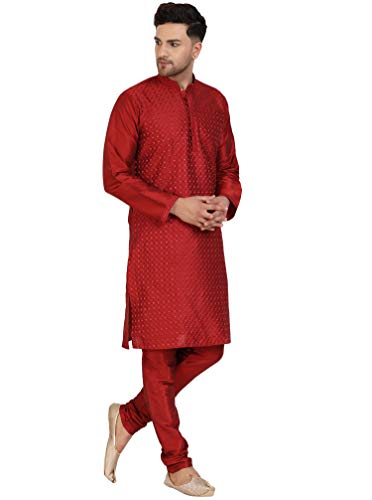 SKAVIJ Uomo Ricamat Kurta Pigiama Set Vestito da Festa Rosso_XL