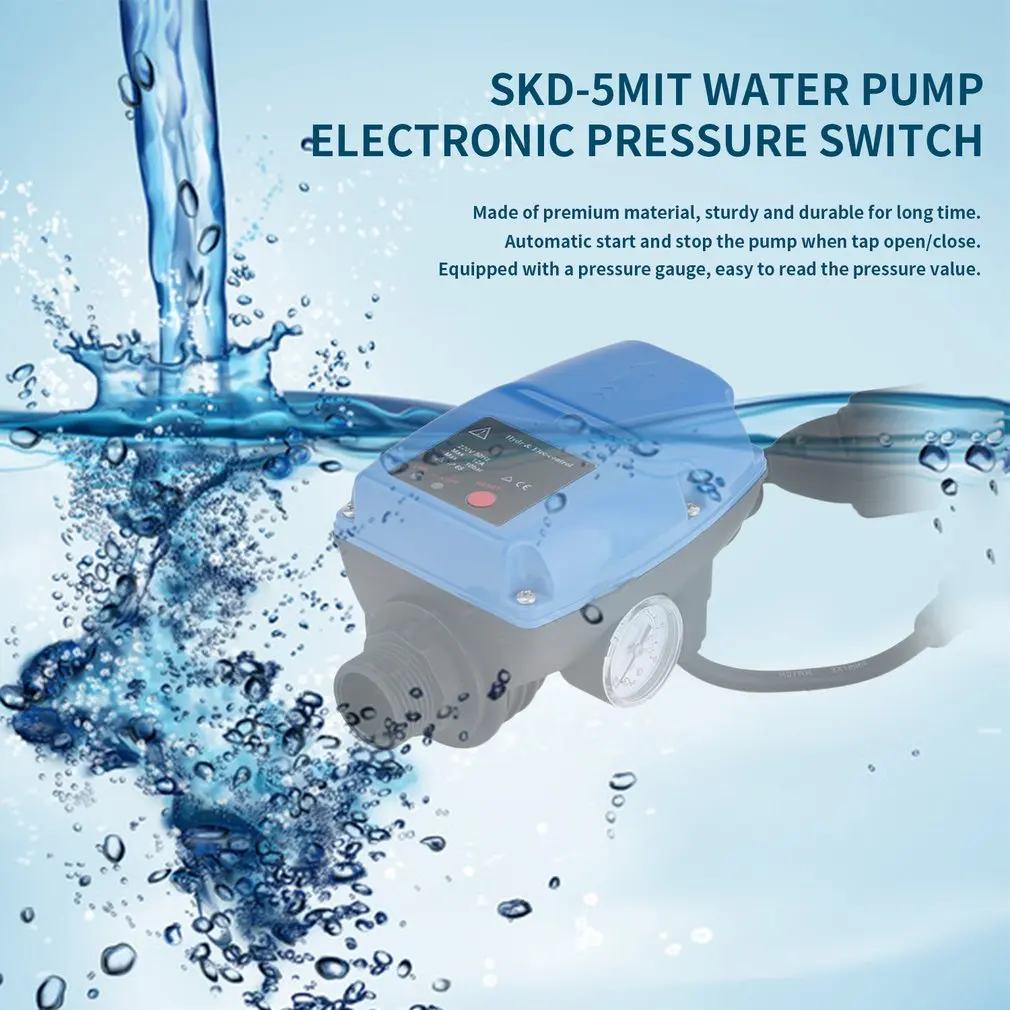 SKD-5MIT Water Pump Pressure Controller Electronic Automatic Pressure Control Switch with Pressure Gauge EU Plug