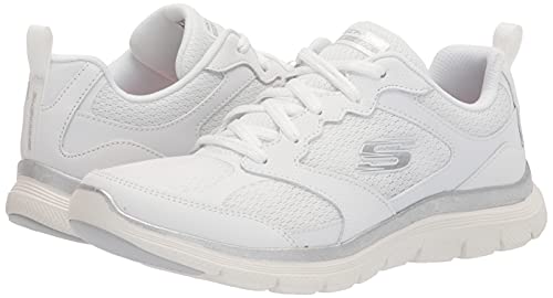 Skechers Flex Appeal 4.0 - Active Flow, Scarpe da ginnastica Donna, Bianco (White Leather/Mesh/Trim), 36 EU