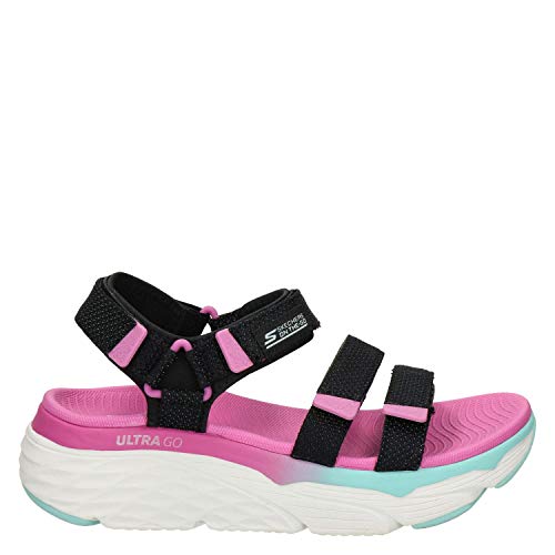 Skechers Max Cushioning, Sandali con Cinturino alla Caviglia Donna, Nero Black Multi Textile BK Mt, 39 EU