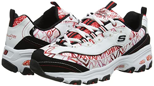 Skechers D'Lites Cupid Charm, Scarpe da Ginnastica Basse Donna, White Leather/Red/Black Trim, 42 EU
