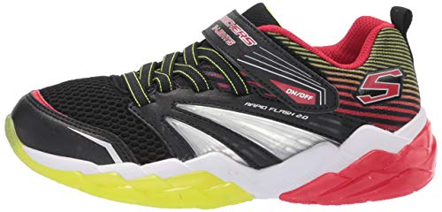 Skechers Rapid Flash 2.0, Sneaker Bambino, Nero (Black Mesh/Black Synthetic/Red & Yellow Trim BKRD), 34 EU