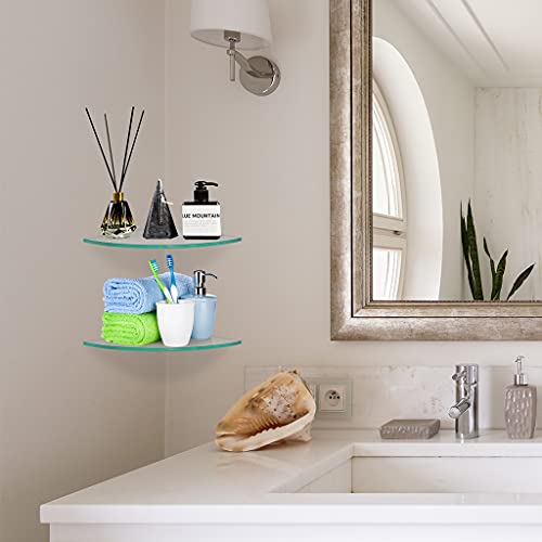Materiale: il ripiano angolare in vetro da bagno è realizzato in vetro temperato spesso 8 mm, robusto e resistente ai graffi