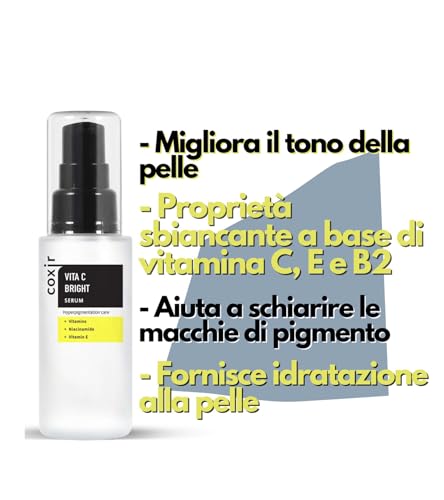 Set Skincare Coreana Viso: Siero Viso 50 ml e Crema Viso 50 ml con Vitamina C-B2-E, effetto Smacchiante e Schiarente. Illumina, Ammorbidisce e Rivitalizza la Pelle. Kit 2 Step - Made in Korea