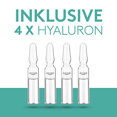 SKINE Dermaroller - Derma Roller con 540 aghi in acciaio inox da 0,25 mm - con 4 fiale di siero ialuronico da 2 ml - privo di profumi, coloranti e conservanti - sigillo di qualità Dermatest