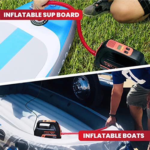 SKINHAWK Pompa ad aria elettrica ad alta pressione 100 PSI per SUP 12 V DC con sistema di raffreddamento, display digitale per paddle board kayak barche sport acquatici