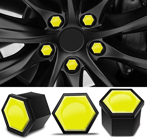 SkinoEu 20 Pezzi Tappi a Vite Ruota Set Universale 17mm Copridadi Ruota per Auto, Antifurto Tappo Ruota, Tappi Dadi Ruota Cerchione con Estrattore Giallo NB 4