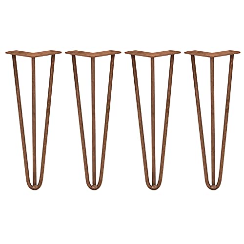 SKISKI LEGS - Set di 4 Gambe per Mobili Gamba per Tavolo In Acciaio Gambe a Forcina Include Viti e Piedini Protezione Gratuiti (31-71cm) - 35.5cm - 3 Rebbi - 10mm - Rame Anticato