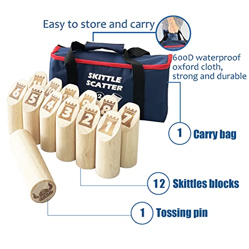 Tutti in un unico set di giochi: il gioco Skittle Scatter Games include 1 x perno lungo (5,8 x 5,8 x 22 cm), 12 x blocchi numerati (5,8 x 5,8 x 15 cm).