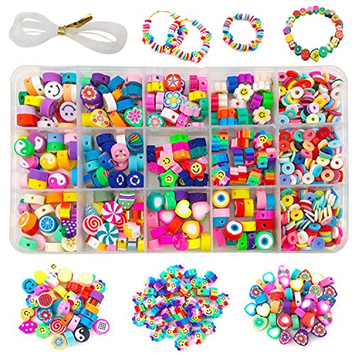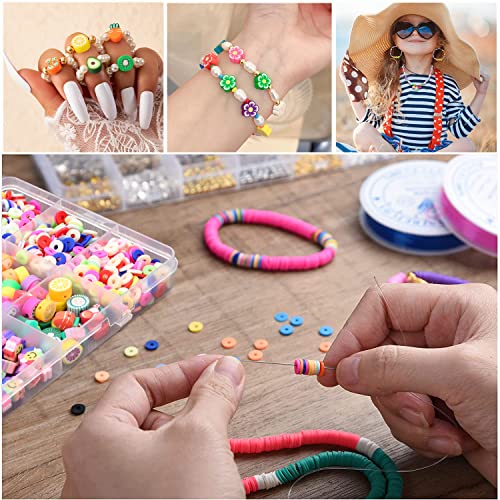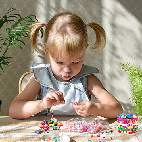 【La confezione include 】Un set di braccialetti di perline di argilla con molti modelli diversi di bellissime perline di argilla colorata e pezzi di ceramica morbida e 4 metri di filo elastico in una scatola a scomparti. È possibile realizzare diversi tipi di braccialetti o collane in base alle proprie esigenze.