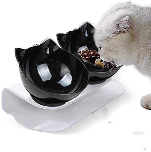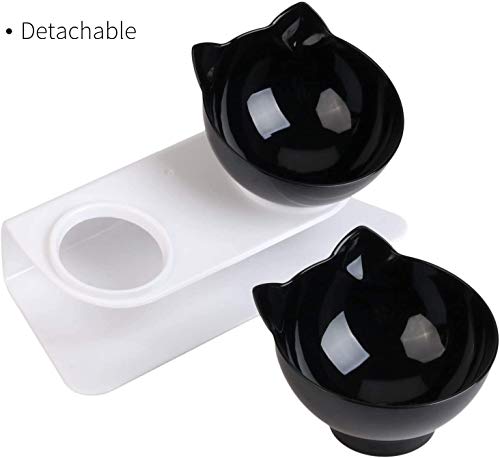 Skjind - Ciotole per gatti doppie inclinate con supporto rialzato, trasparente senza fuoriuscite di liquidi, ciotola per animali domestici, ideale per gatti e cani di piccola taglia (doppie ciotole)