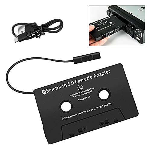SKJJL Adattatore Cassetta AutoradioBT 5.0, Adattatore Cassetta Autoradio Bluetooth con 50 cm USB, Adattatore Cassetta Autoradio, per Lettore di Cassette Convertitore MP3, Nero
