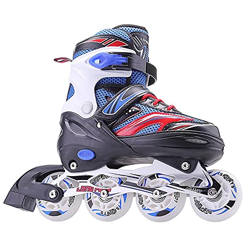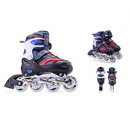 SKLOER Pattini a rotelle da donna/ragazza, pattini a rotelle per bambini, pattini in linea completi, da uomo, con zaino blu (30-34)