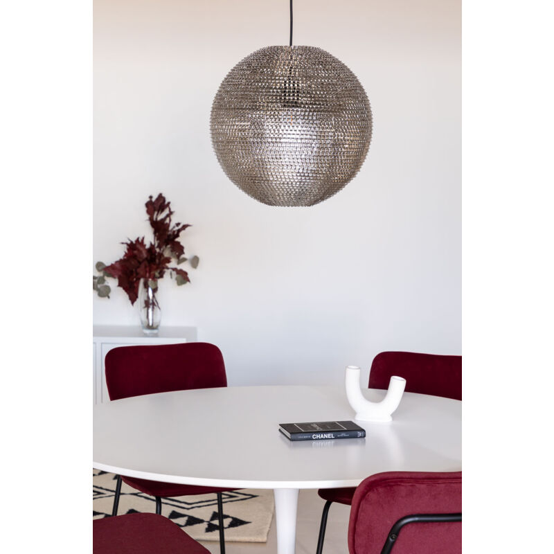 Viaggia negli anni 80 e 90 con la lampada Globe la cui forma ricorda le tipiche palline utilizzate nelle discoteche. Vesti i tuoi spazi con stile e glamour e trasforma la tua luce al centro di tutti gli occhi. La struttura di questo pezzo è realizzata in acciaio, un materiale molto resistente e durevole con una finitura lucida. Il corpo dell apparecchio ha una silhouette particolare. Rivestito con una specie di paillettes cromate, ricorda la forma di una sfera. È una struttura amallada aperta che ti permetterà di creare spettacolari giochi di luce negli angoli più speciali della tua casa o struttura. Inoltre, viene fornito con un cavo tessile nero, regolabile in altezza fino a 150 cm, per adattarsi al rivestimento. Combinalo in spazi di diversi stili, come Eclectic, e porta distinzione, glamour e autenticità all ambiente. È adatto per lampadine E27, in grado di sopportare una potenza massima di 40W . Il suo utilizzo è esclusivamente per interni, ideale per camere da letto, salotti e
