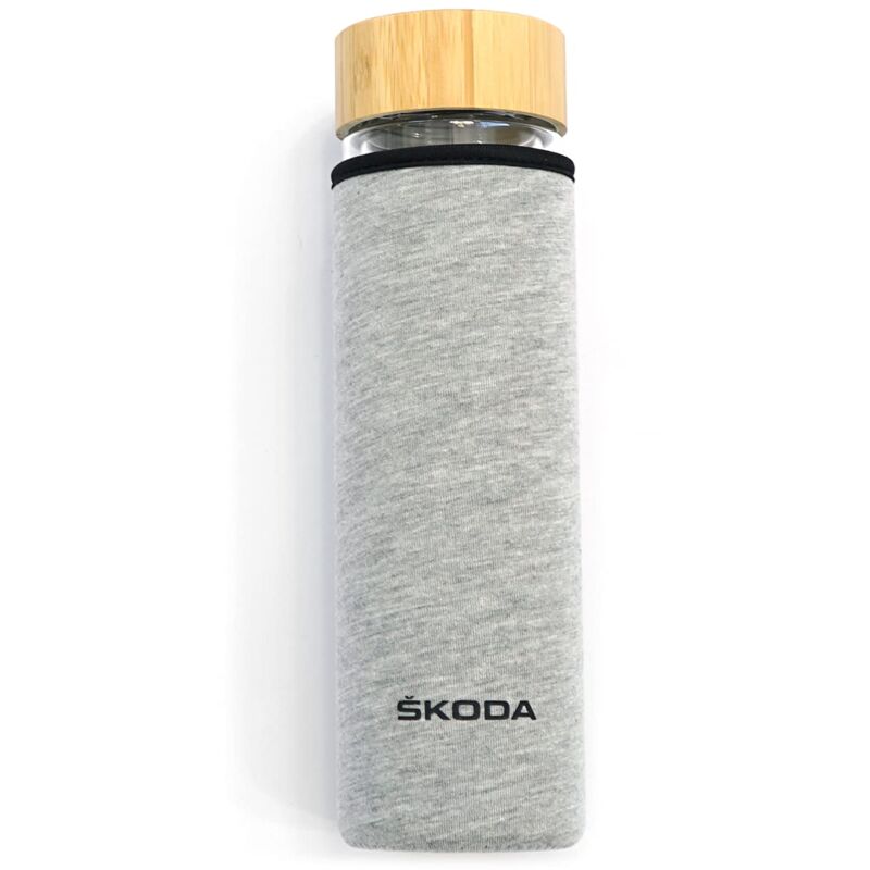 Elegante bottiglia in vetro borosilicato a doppia parete con coperchio in bambù. Il colino integrato in acciaio inox consente di tenere separati tè o frutta e può anche essere versato con acqua calda quando si è in viaggio. Il rivestimento in neoprene grigio melange mantiene la bevanda calda o fredda in modo ottimale e protegge la bottiglia di vetro dalla rottura. Il vetro è adatto per liquidi fino a 100 °C.