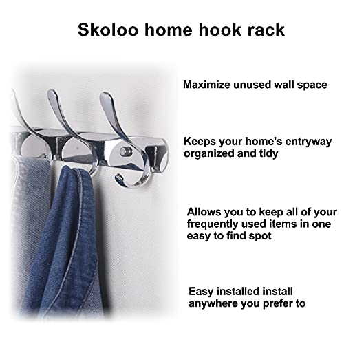 SKOLOO - Appendiabiti da parete con 5 ganci, in metallo, per appendere cappotti, giacche, zaini, ganci da parete argentati, confezione da 2