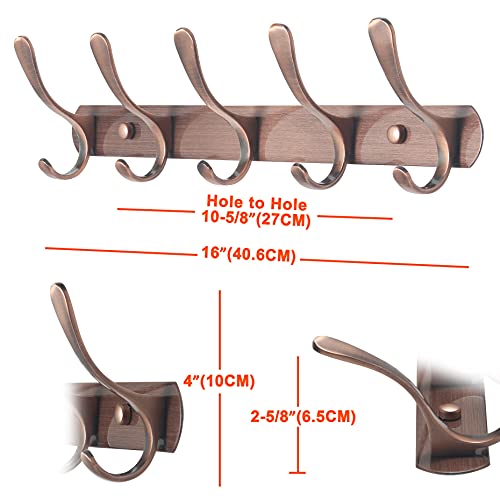 SKOLOO Appendiabiti da parete moderno con 5 ganci, appendiabiti da parete in metallo per appendere cappotti, giacche, zaini, cappelli, appendiabiti da parete in rosso