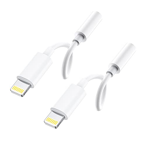 SKOYPU 2 PackMFI Certified Adattatore da Lightning a jack da 3,5 mm Adattatore per cuffie per iPhone Splitter cavo audio AUX compatibile con iPhone 13/12/11/XS/XS Max/XR/per tutti i sistemi iOS