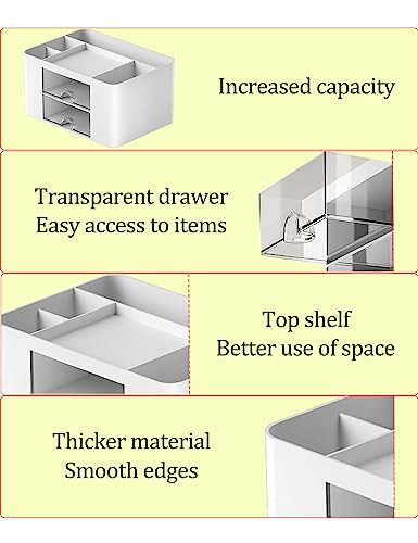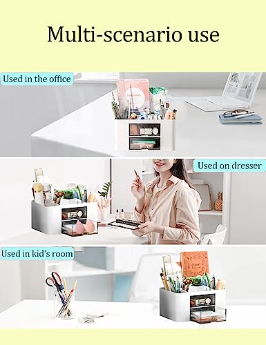 Skran Multifunctional Office Desk Organizer With 7 Compartments (5 Compartments & 2 Transparent Drawers), for Home, School (White)