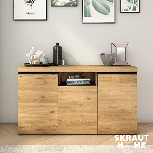 Skraut Home - Madia - Modello Naturale - 140 x 40 x 81 cm - Mobile Ingresso con 3 Ante - Stile Nordico - Melaminico - Rovere e Nero