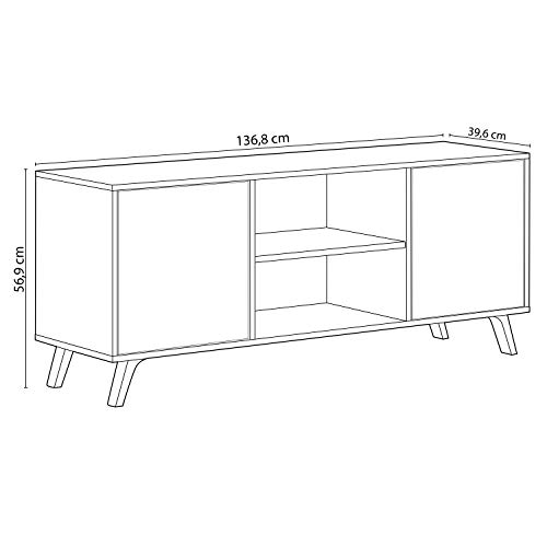ADATTABILITÀ AL 100%: le sue misure corrispondono a 57 cm (altezza), 140 cm (lunghezza) e 40 cm (profondità), il tutto con le gambe assemblate. Il nostro moderno mobile TV 140 WIND è un'opzione ideale ed elegante qualunque sia il tuo stile di decorazione.