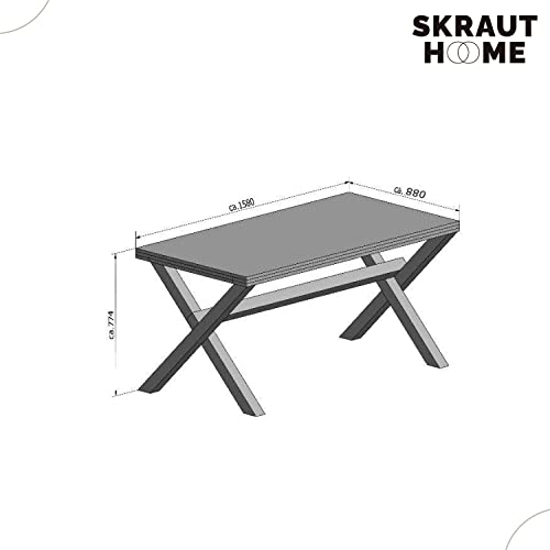 FUNZIONALITÀ 100%: le sue misure corrispondono a 77 cm (altezza), 158 cm (lunghezza) e 88 cm (profondità), il tutto con le gambe assemblate. Le dimensioni unite alla funzionalità e al design rendono il tavolo da pranzo X-LOFT elegante e ideale da collocare in ogni ambiente della casa, come la sala da pranzo o la cucina.