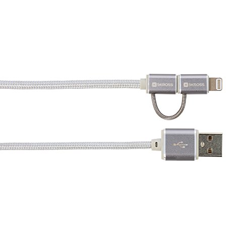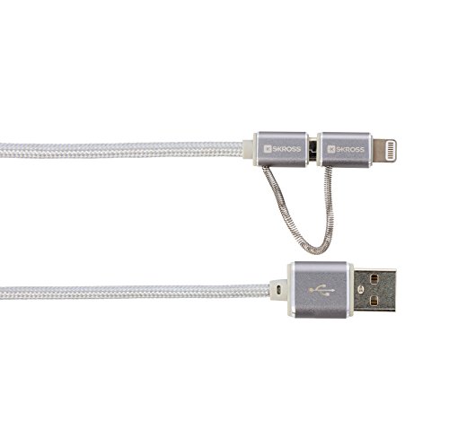 SKROSS | Cavo Ricarica e Dati 2 in 1 Micro + Lightning Silver, Lunghezza Cavo 1mt.