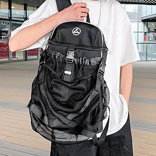 ♈Design elegante: progettato con una tasca a rete per trasportare il pallacanestro o il calcio, questo zaino nero è molto elegante e alla moda.