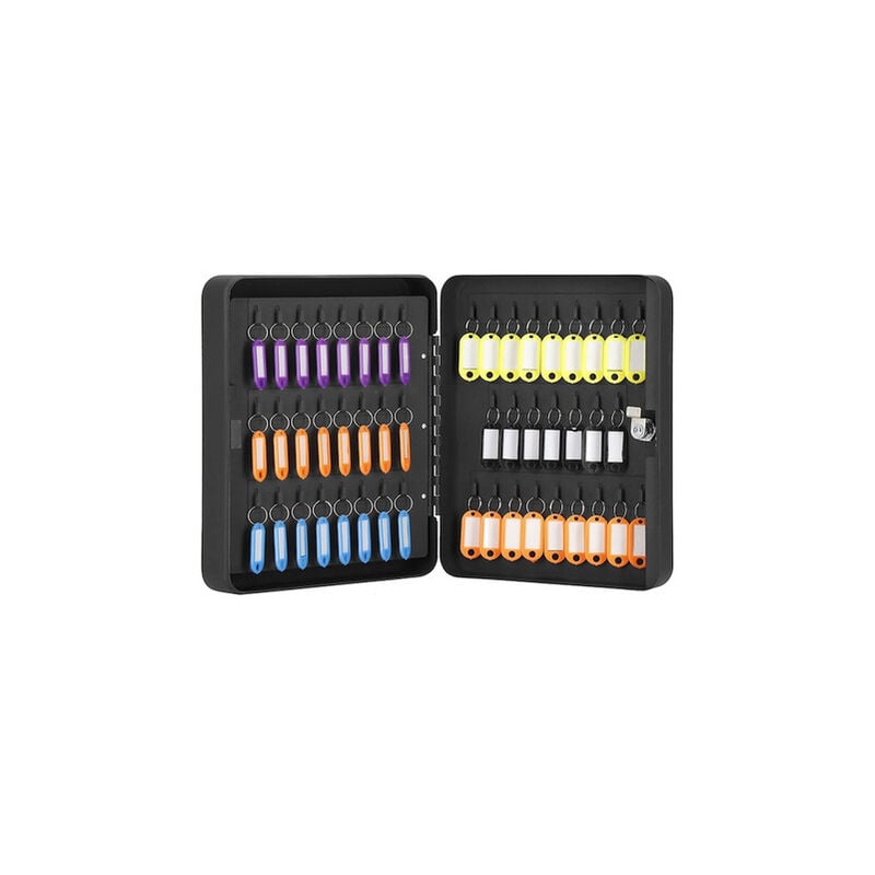 Una scatola portachiavi in acciaio sarà utile in ogni ufficio, scuola, portineria, spogliatoio e deposito bagagli. Con i 100 ganci all'interno della scatola, potrai comodamente conservare tutte le chiavi, in modo da averle sempre a portata di mano. La scatola è realizzata con materiali resistenti, ha pareti spesse ed è dotata di chiusura a chiave, il che significa che gli oggetti di valore al suo interno saranno al sicuro. I fori perforati sul retro consentono di appendere la scatola al muro. La scatola può essere fissata utilizzando i chiodi e le viti inclusi nel set. Inoltre, nell'ordine sono inclusi anche 100 appendini per le chiavi, in modo da poter etichettare tutte le chiavi e mantenere l'ordine. Parametri: Marca: Springos® Materiale: acciaio Colore della scatola: nero Numero di ganci: 100 Tipo di chiusura: a chiave Incluso nel set: Scatola portachiavi Appendini per le chiavi - 100 pezzi Piastra mobile con ganci all'interno Componenti di montaggio Misure: Larghezza: 30 cm